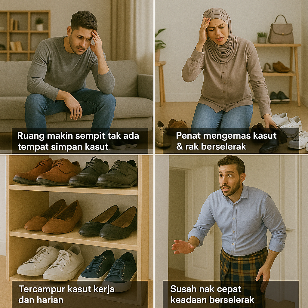 - Setiap hari penat mengemas kasut dan rak berselerak