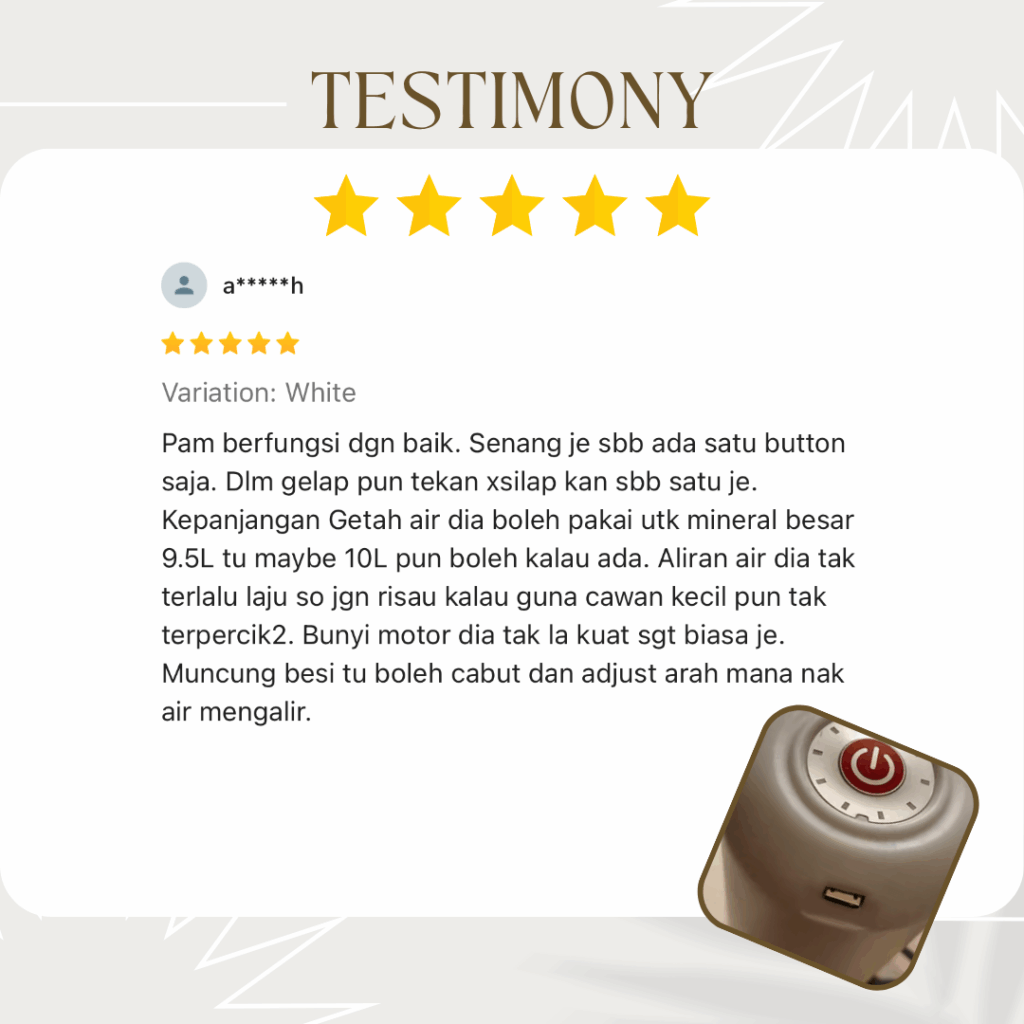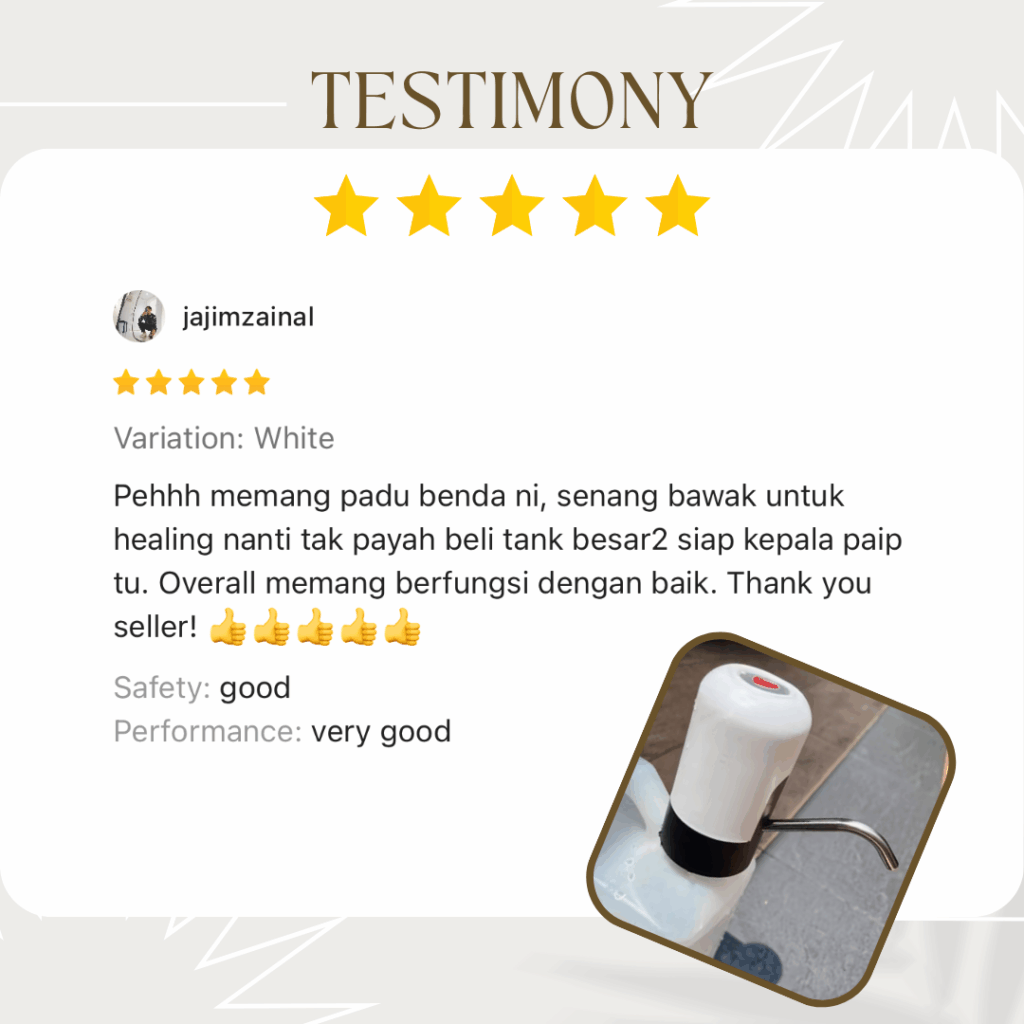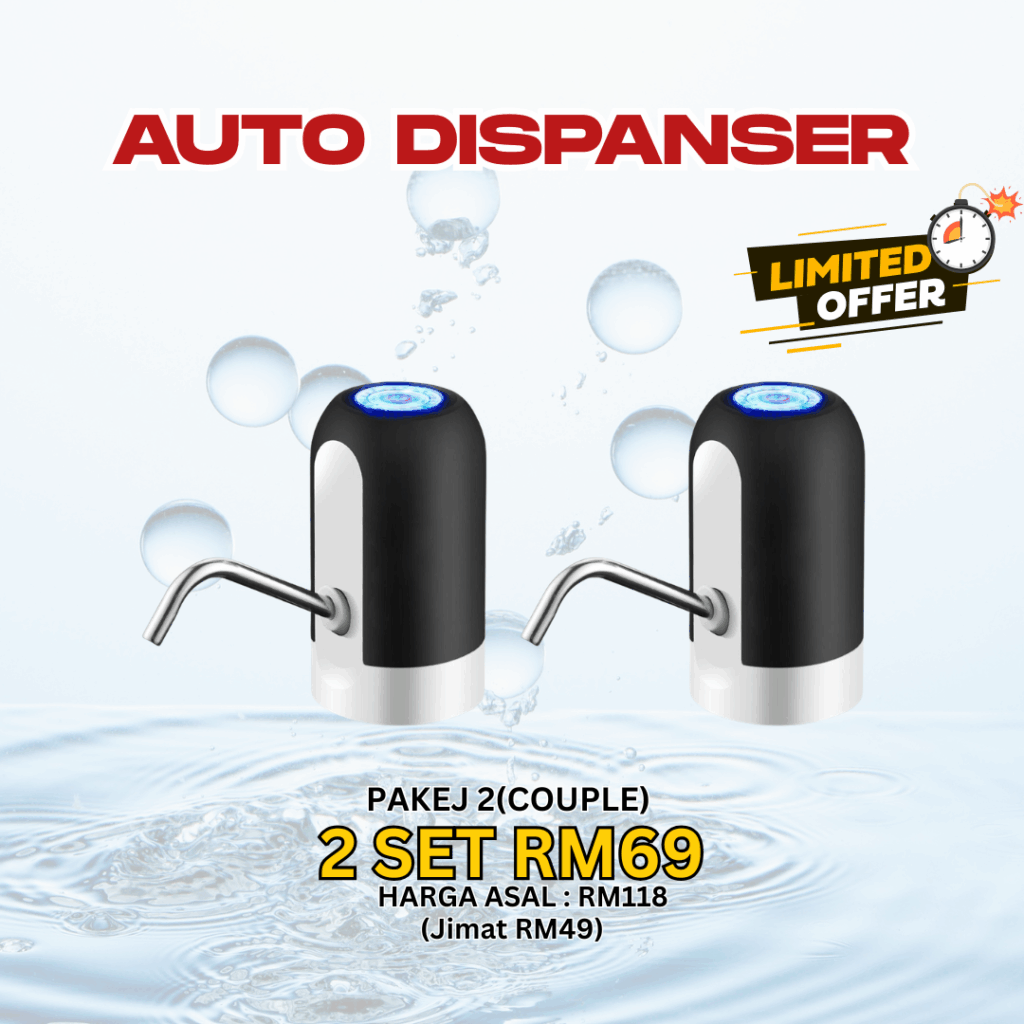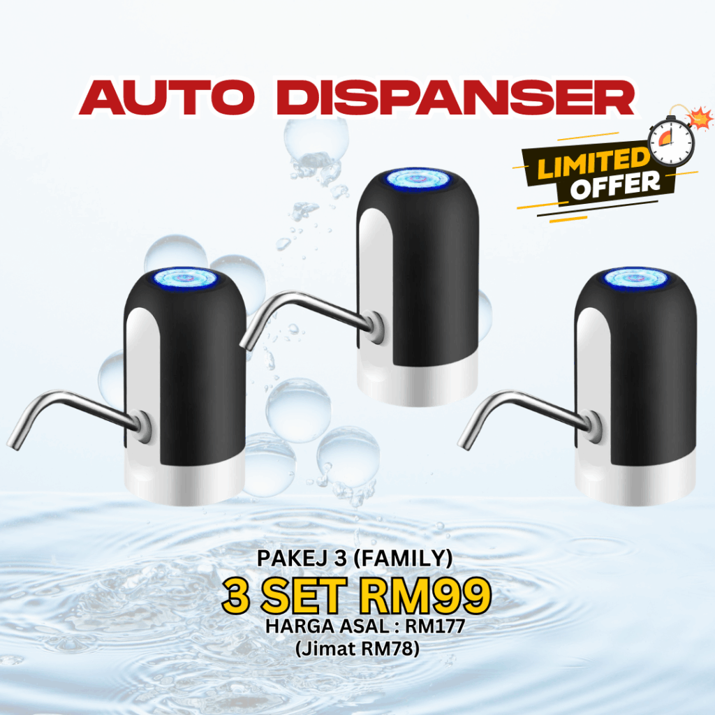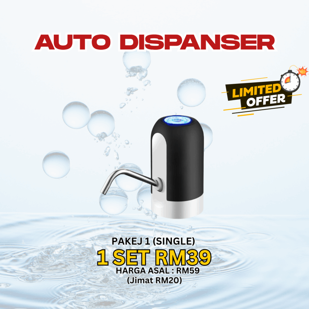 💧 TAK NAK BAYAR BULAN-BULAN… TAPI NAK MINUM AIR SENANG & CEPAT? Berapa lama lagi nak angkat tong air berat… atau bayar komitmen tiap bulan sampai ratus ringgit? 😩 Hakikatnya ramai dah mula cari solusi lebih bijak… Tiada ruang untuk letak water purifier Tak mampu nak angkat botol besar masuk ke dalam dispanser Tak suka komitmen bulanan untuk bayar wayar purifier 😩 Hakikatnya perlu mula cari solusi lebih bijak… Tapi Jangan Risau! Telah Terjual Sepanjang Tahun 0 PERKENALKAN.. AUTO DISPANSER 💧 Tekan je 1 button… terus keluar air! ⚡ KENAPA RAMAI DAH TUKAR KE AUTO DISPENSER NI? 💧 1 Button Operation – Tekan sekali terus air keluar lancar 🔋 Rechargeable USB – Cas macam phone, tahan lama 🧴 Universal Fit – Boleh guna botol 5L, 10L, 18L 🚫 Tak tumpah & lebih hygienic – Air keluar terus ke cawan 🏠 Portable & jimat ruang – Sesuai rumah kecil, bilik, office KELEBIHAN AUTO DISPANSER ✅ Ada Auto Dispenser❌ Tak Ada Auto DispenserTekan je terus air keluarKena angkat & tuang manualTak perlu komitmen bulananBayar Coway/Cuckoo tiap bulanJimat ruang, kecil & portableMesin besar & beratMudah guna semua umurSusah untuk kanak-kanak & warga emasAir lebih bersih & tak tumpahRisiko tertumpah & kotorCas USB, jimat elektrikMesin guna elektrik tinggi SPESIFIKASI PRODUK Apa Kata Pengguna Sebenar? 🔥 Promo Terhad 👉 Ini bukan kos… ini pelaburan jimat jangka panjang Jom dapatkan Hari Ini!! Promosi Istimewa PROMO TAMAT DALAM MASA TAK PERLU RISAU BARANG TAK SAMPAI. BAYAR JE DEKAT POSMEN 👉 Klik Sekarang Sebelum Kehabisan! Nak Order? Sila Isi Borang Tempahan di Bawah