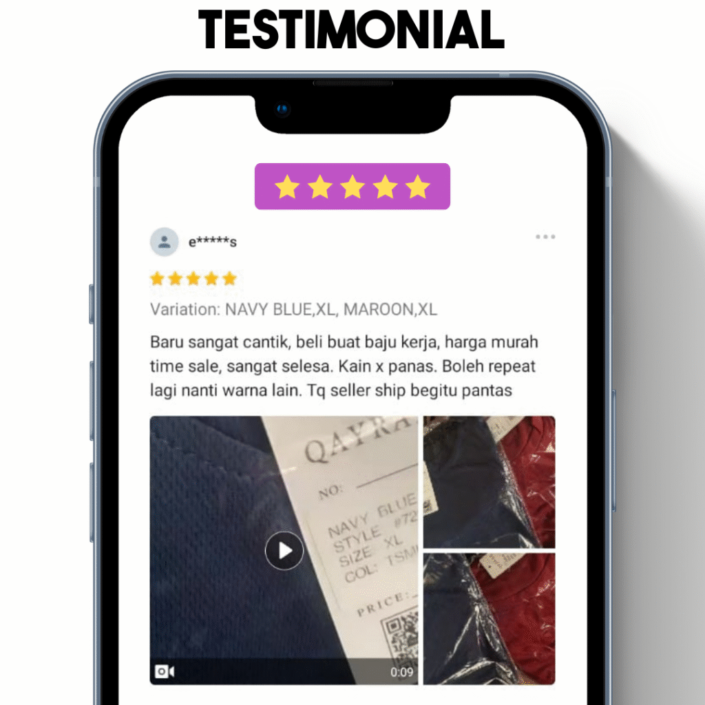 ❌ Fizikalnya yang nipis dan cepat koyak✅ Kain berkualiti – tahan lama dan lembut