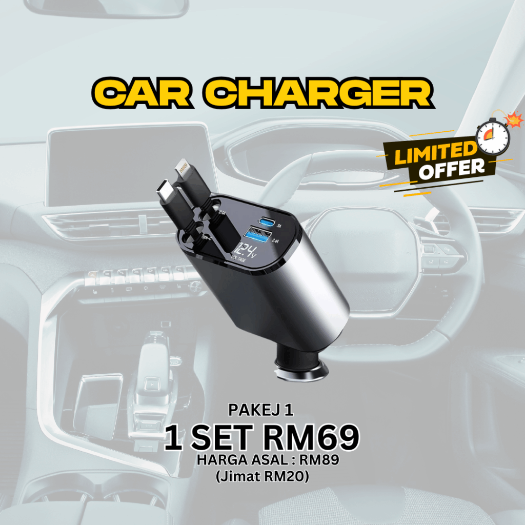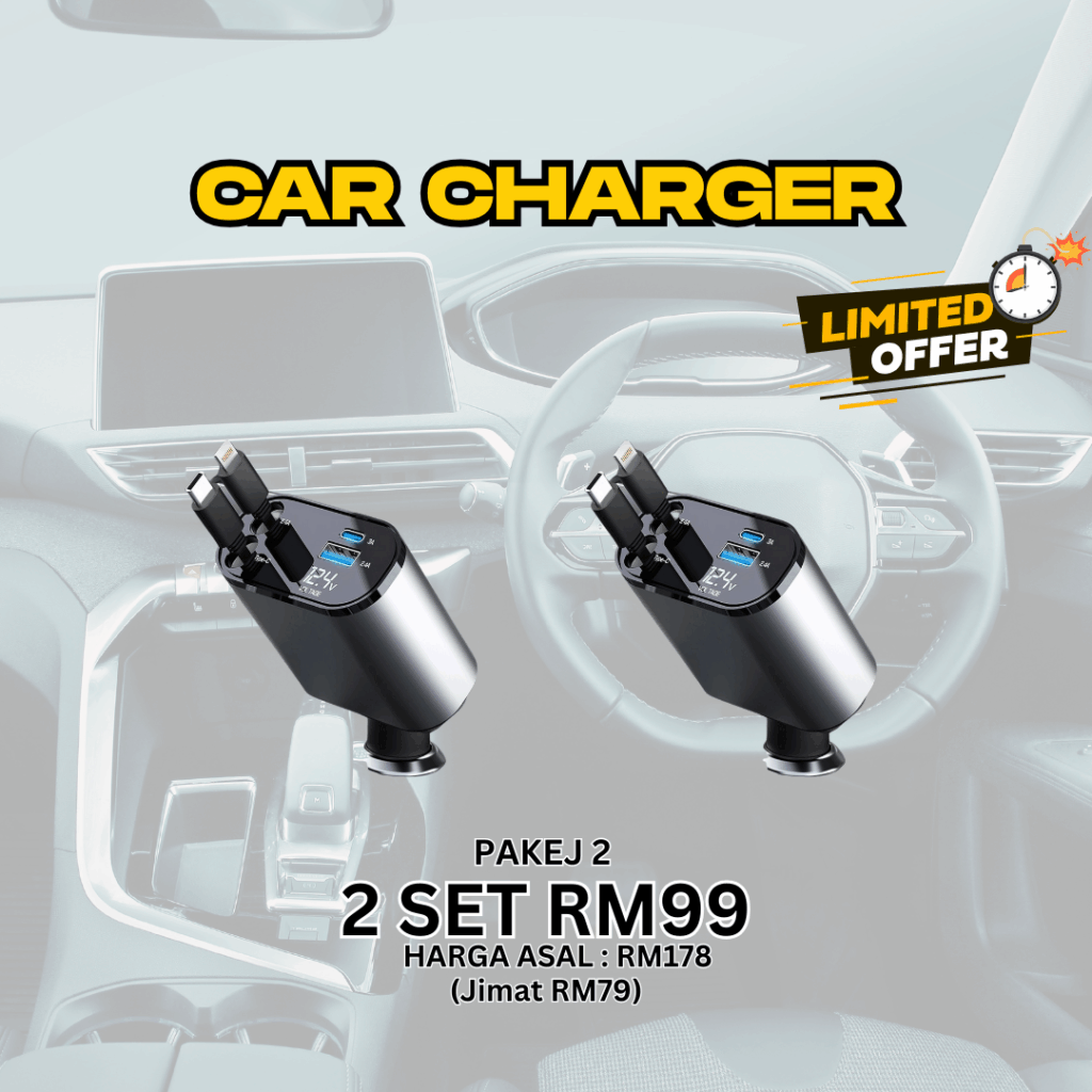 Pernah sampai bergaduh dengan wife sebab berebut cable charger.. Mesti bila dalam kereta alami masalah seperti ini? Cable biasa selalu lambat penuh tak fast charging Cable berselerak di dalam kereta Selalu tertinggal cable phone bila travel jauh Kalau dah sampai tahap bergaduh dengan wife sepanjang dalam kereta mood jadi dingin saja.. Tapi Jangan Risau! Inilah Solusi Yang Paling Berkesan! Telah Terjual Sepanjang Tahun 0 MEMPERKENALKAN MULTI CAR CHARGER Satu device β settle semua masalah charging dalam kereta. Ada kabel tarik keluar β tak perlu bawa cable asing π 3 device boleh cas serentak β‘ Smart LED display β nampak volt kereta π Rotate 180Β° β mudah adjust ikut ruang π Fast charging β caj lebih cepat π Kereta nampak kemas & premium β¨ Spesifikasi Produk Kelebihan Multi Car Charger: SituasiCharger Biasa πCar Charger Ini πWayar dalam keretaBerselirat & panjang π΅Kabel tarik & simpan kemas β¨Bilangan device boleh cas1β2 device sahaja βCas 3 device serentak β‘Perlu bawa kabel asingYa π©Tak perlu πKelajuan chargingSlow & tak stabil π’Fast charging πRuang keretaNampak serabut πNampak kemas & premium πKeselesaan travel jauhStress cari charger π«Plug & charge terus π Apa Kata Pengguna Sebenar? Berita Baik Untuk Yang Grab Hari Ini! Promosi Khas Hari Ini PROMO TAMAT DALAM MASA Jangan Tunggu Lagi LIMITED PROMO HARI INI!!Bertindak Sekarang! βSTOK ADALAH LIMITEDβ Nak Order? Sila Isi Borang Tempahan di Bawah Car Charger MYPakej Pakej 1 - RM69 (1x Set Car Charger) Pakej 2 - RM99 (2x Set Car Charger)NAMA PENUHALAMATPOSKODNO TELEFONNOTAPOSTAGE COD (RM10)Tempah Sekarang