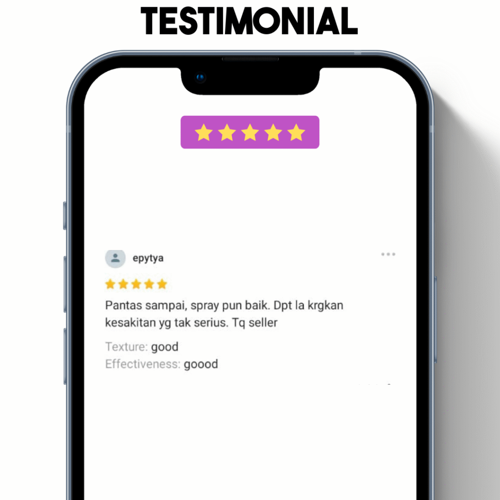 Hanya sembur untuk kesejukan pada kawasan sakit.Tak perlu urut, ambil ubat. Kelegaan pantas