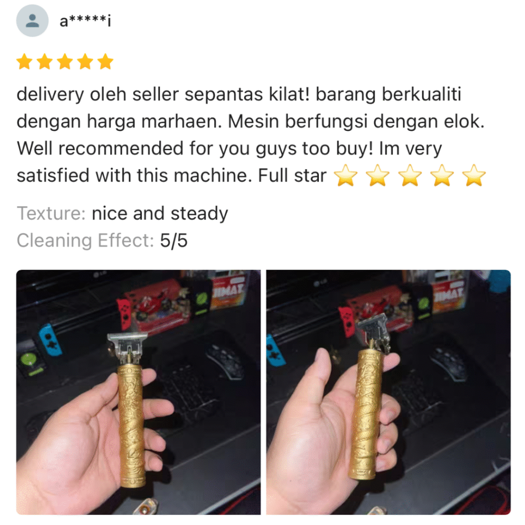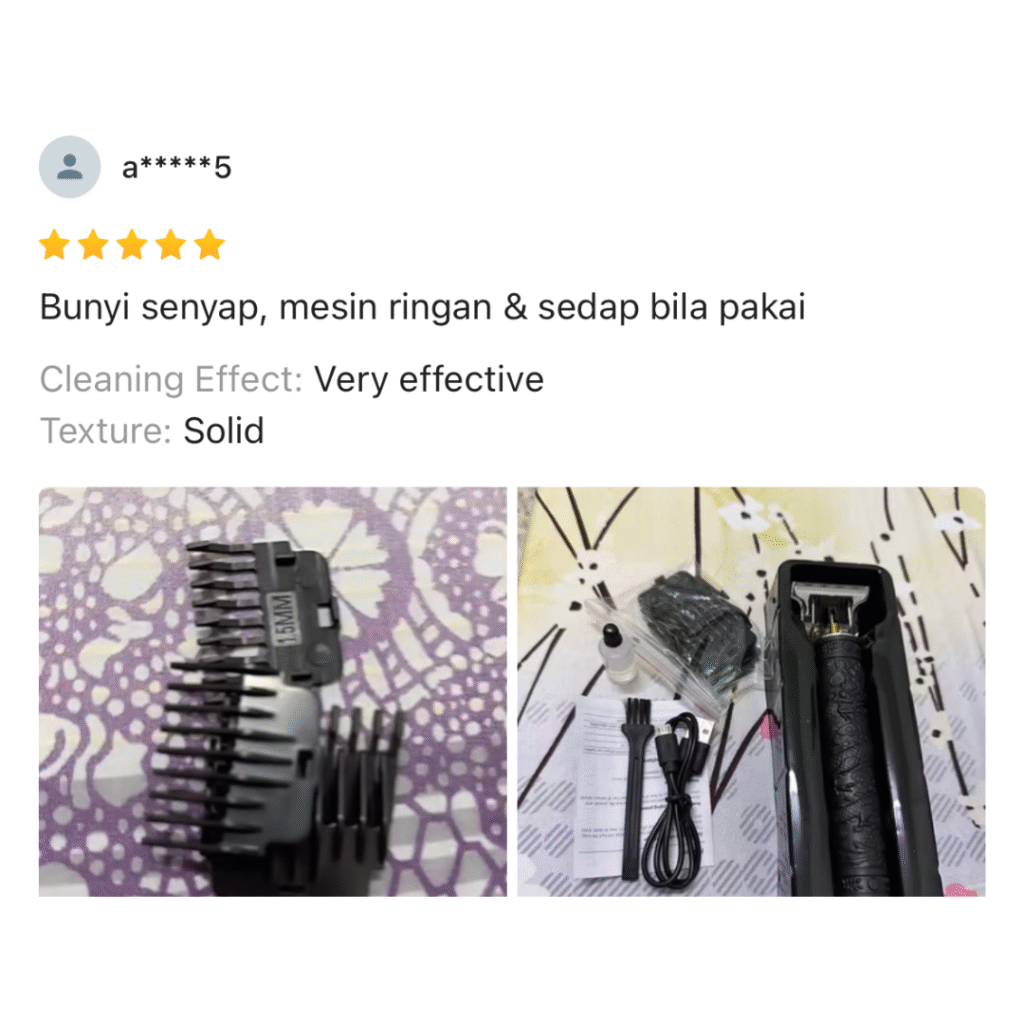 “Pakai pisau cukur biasa, bukan rambut je hilang – kulit pun luka 😖” KALAU ANDA ADA MASALAH SEPERTI DI BAWAH JANGAN SKIP PAGE INI!!! Nak trim sendiri tapi risiko luka kulit kepala Mata trimmer cepat tumpul, potong pun tak rata Barber mahal walaupun nak potong sedikit Hair trimmer yang berwayar senang rosak Jangan Risau! Inilah Solusi Yang Paling Berkesan! Telah Terjual Sepanjang Tahun 0 MEMPERKENALKAN "CORDLESS TRIMMER" Smart Grooming Tool Setiap Lelaki Patut Ada! Stainless Steel Blade – mata tajam, potongan bersih & licin Strong Engine – motor laju & senyap, potongan konsisten 4 Limit Combs Percuma – boleh pilih panjang rambut ikut gaya Waterproof Blade – mudah cuci, tak berkarat Rechargeable via USB – boleh caj di mana-mana, powerbank pun boleh! TUTORIAL Kelebihan Cordless Trimmer Ni – Simple Tapi Besar Manfaatnya: Trimmer BiasaHair Trimmer Metal Edition❌ Cepat tumpul✅ Mata Stainless Steel tajam & tahan❌ Bunyi kuat & serabut✅ Motor kuat tapi senyap❌ Tidak berkualiti & mudah rosak✅ Design Eksklusif & premium❌ Susah nak cuci✅ Waterproof – senang bilas❌ Tak ada pilihan panjang✅ 4 mata percuma – boleh pilih gaya Apa Kata Pengguna Sebenar? Berita Baik Untuk Yang Grab Hari Ini! Promosi Khas Hari Ini PROMO TAMAT DALAM MASA Jangan Tunggu Lagi 🌟 Nak Bilik Air Kemas, Tanpa Drill Tile?Bertindak Sekarang! Nak Order? Sila Isi Borang Tempahan di Bawah Cordless Trimmer MYPakej Pakej Single - RM49 (1x Cordless Trimmer) Pakej Combo - RM69 (2x Cordless Trimmer) Pakej Jimat - RM89 (3x Cordless Trimmer)NAMA PENUHALAMATPOSKODNO TELEFONNOTAPOSTAGE COD (RM10)Tempah Sekarang