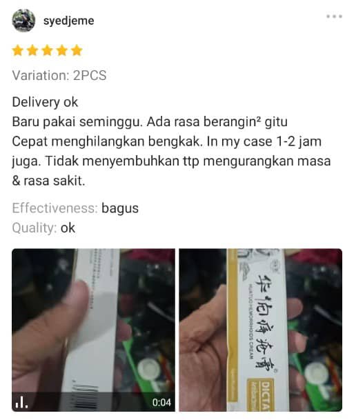 ❌ Hanya berfungsi menahan sakit✅ Peranan utama surutkan bengkak dan hentikan pendarahan