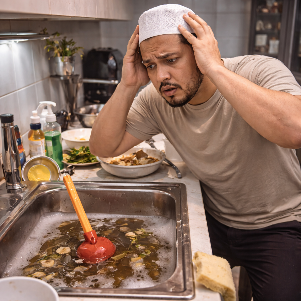 - Sinki dapur tersumbat tanpa tahu punca