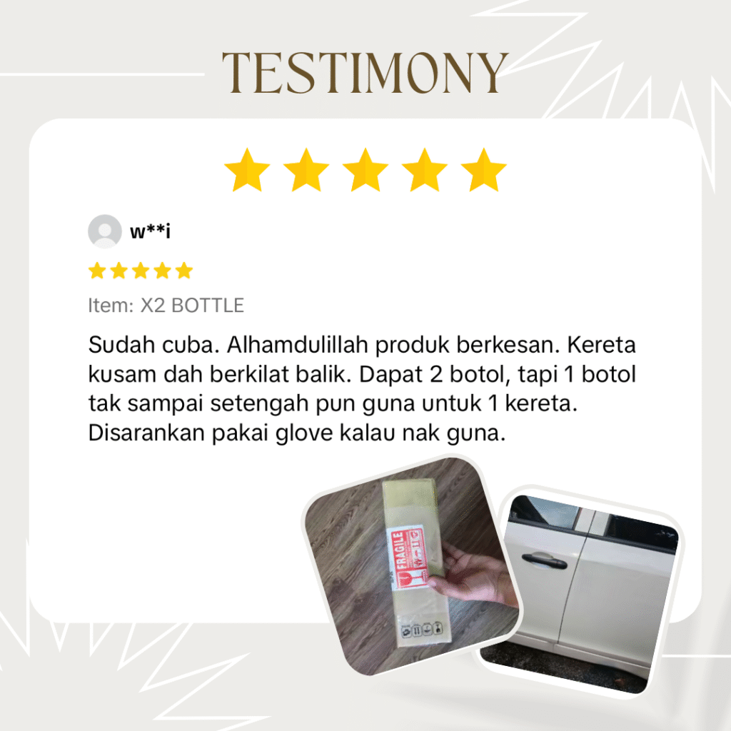 | Risiko calar jika salah teknik/microfiber | Selamat untuk permukaan cat – formulasi khas ✅ |
