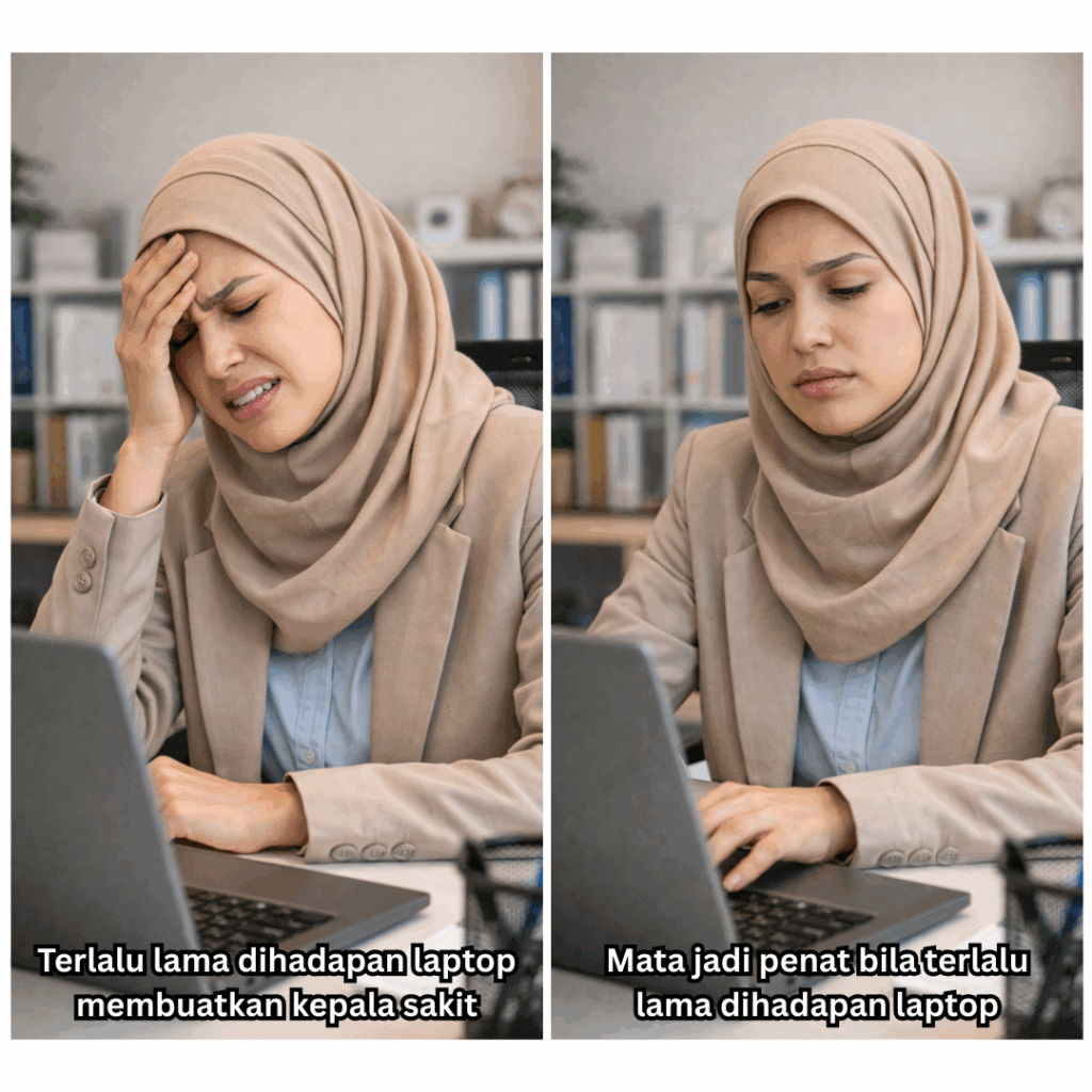 - Mata jadi penat bila terlalu lama dihadapan laptop
