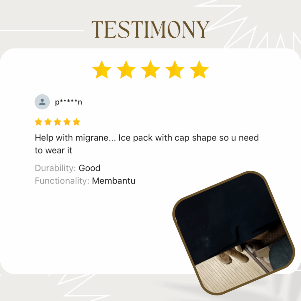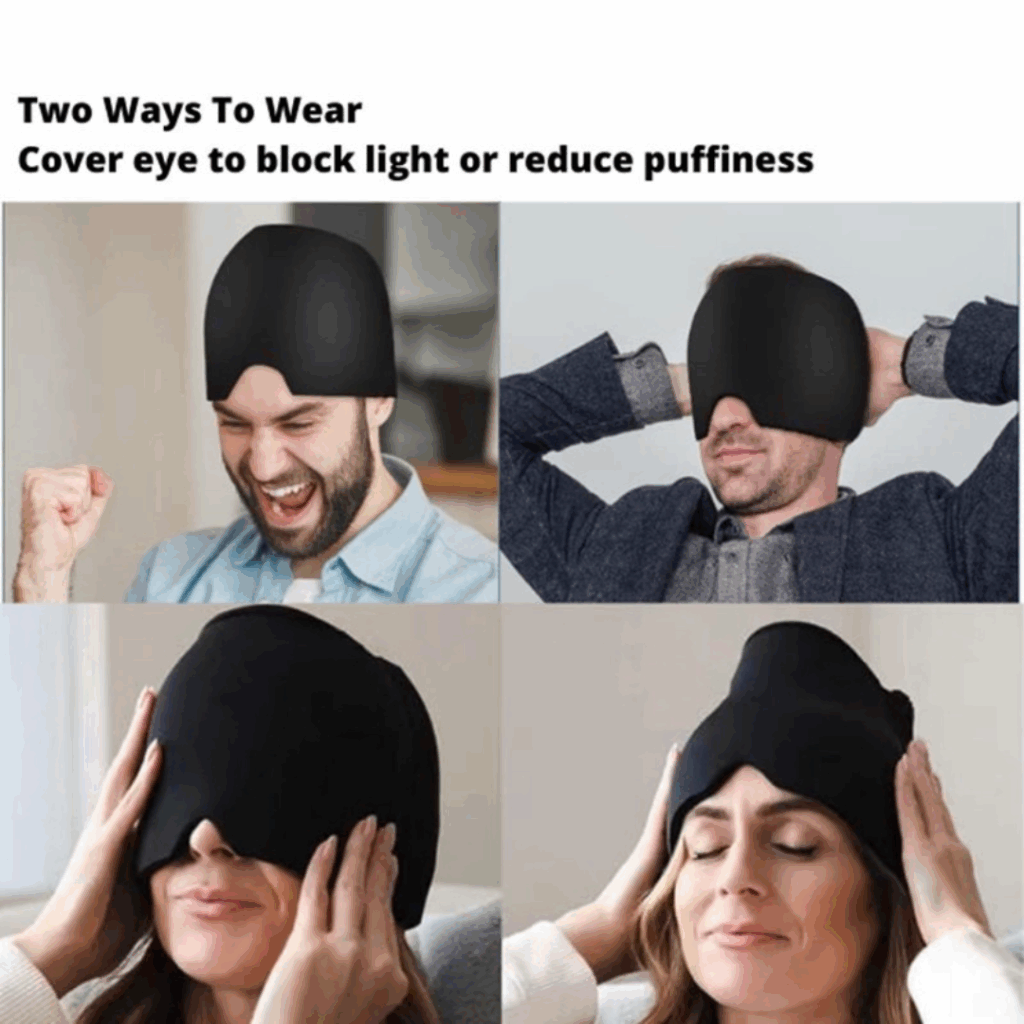 | ❌ Letak Ais Biasa | ✅ Migraine Relief Cap |