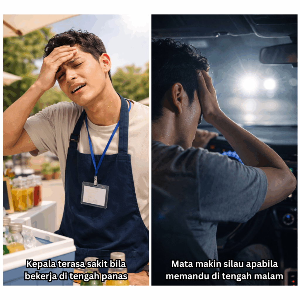 - Kepala terasa sangat sakit bila bekerja di tengah panas terik