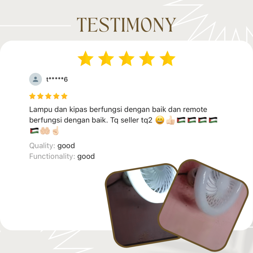 | Kawalan & Fungsi | Remote, mode lampu & kipas. | Manual atau berasingan. |