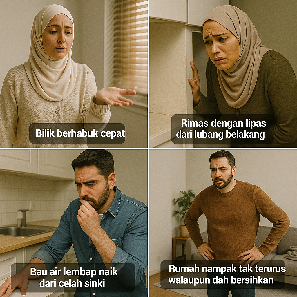 - Bocor kecil di dapur/bilik/tandas buat rumah kotor