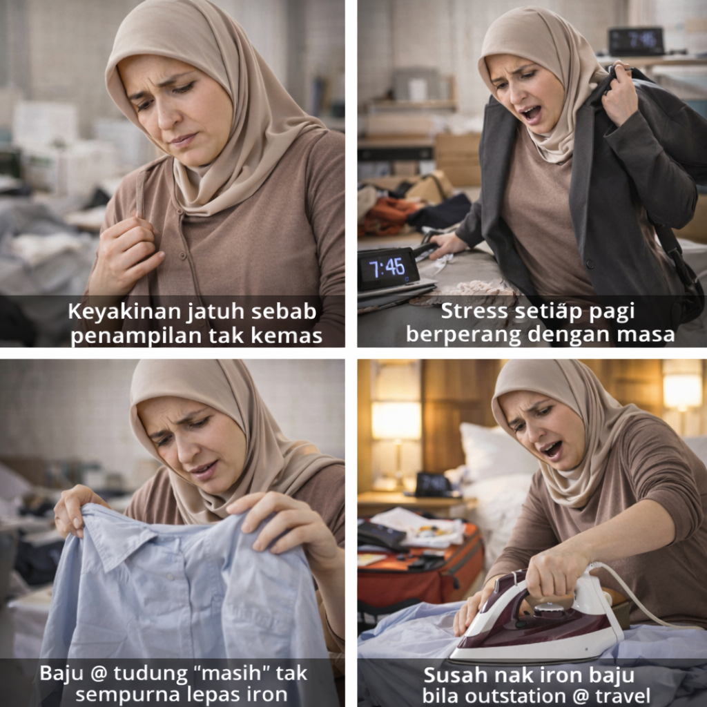 Risau Setip Pagi Lambat Ke Office Sebab Nak Iron tudung & Baju? Iron Sedia Ada Berat, Tak Comfort? Kena Cucuk Plug, Semua Buat Lambat.