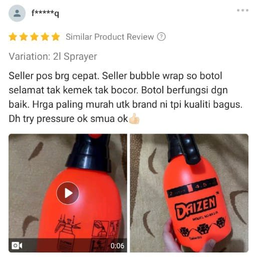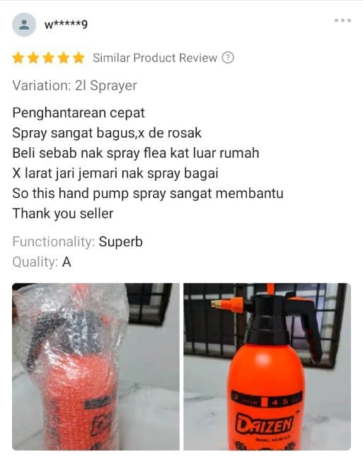 - Botol spray biasa cepat rosak & tangan lenguh