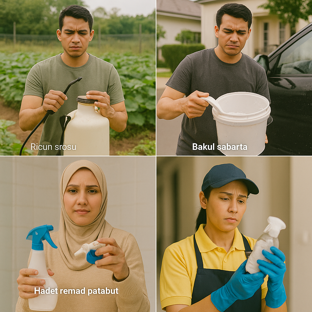 Untuk Kebun, Rumah, Kereta, Kedai, semua boleh. Pam sikit ➜ Sembur kuat + sekata ➜ Kerja siap cepat