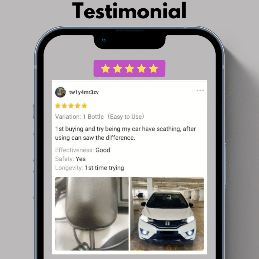 - Pembaikan parut pantas — calar ringan hilang dalam 10–30 saat