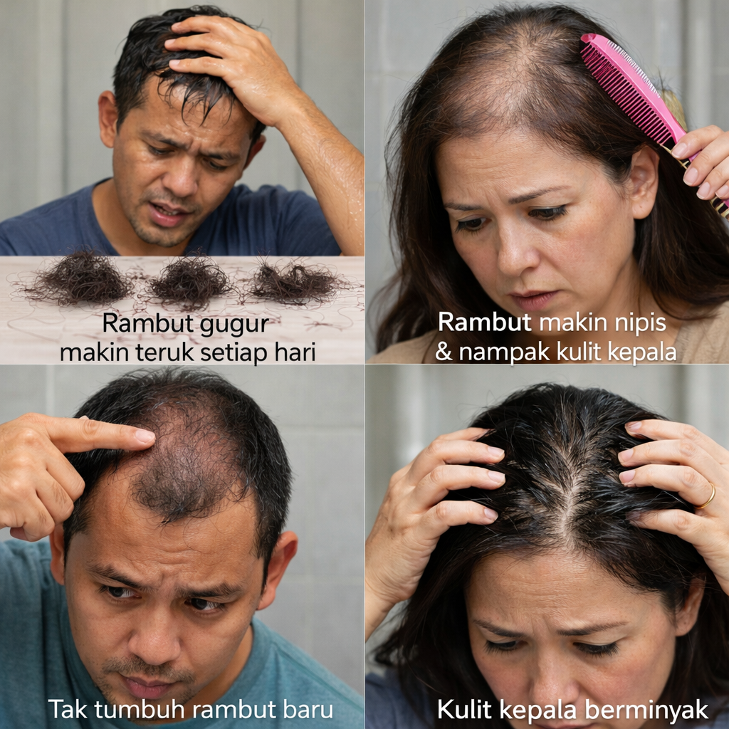 Kesan sementara & tidak fungsi pada keguguran💡 2 fungsi aktif – hentikan rambut gugur & ransang pertumbuhan rambut baru