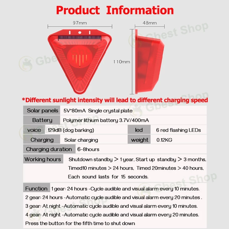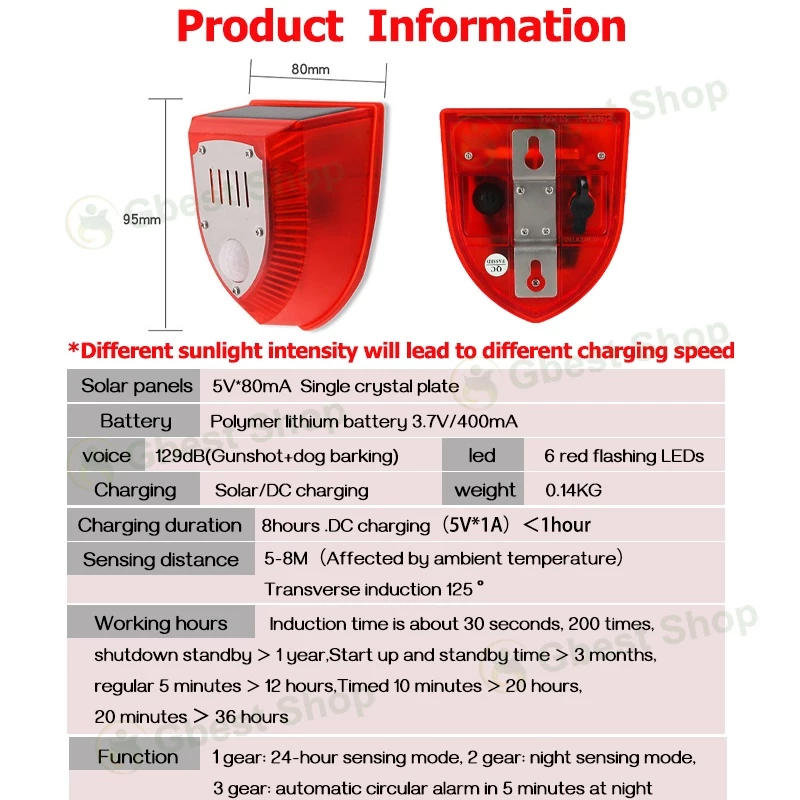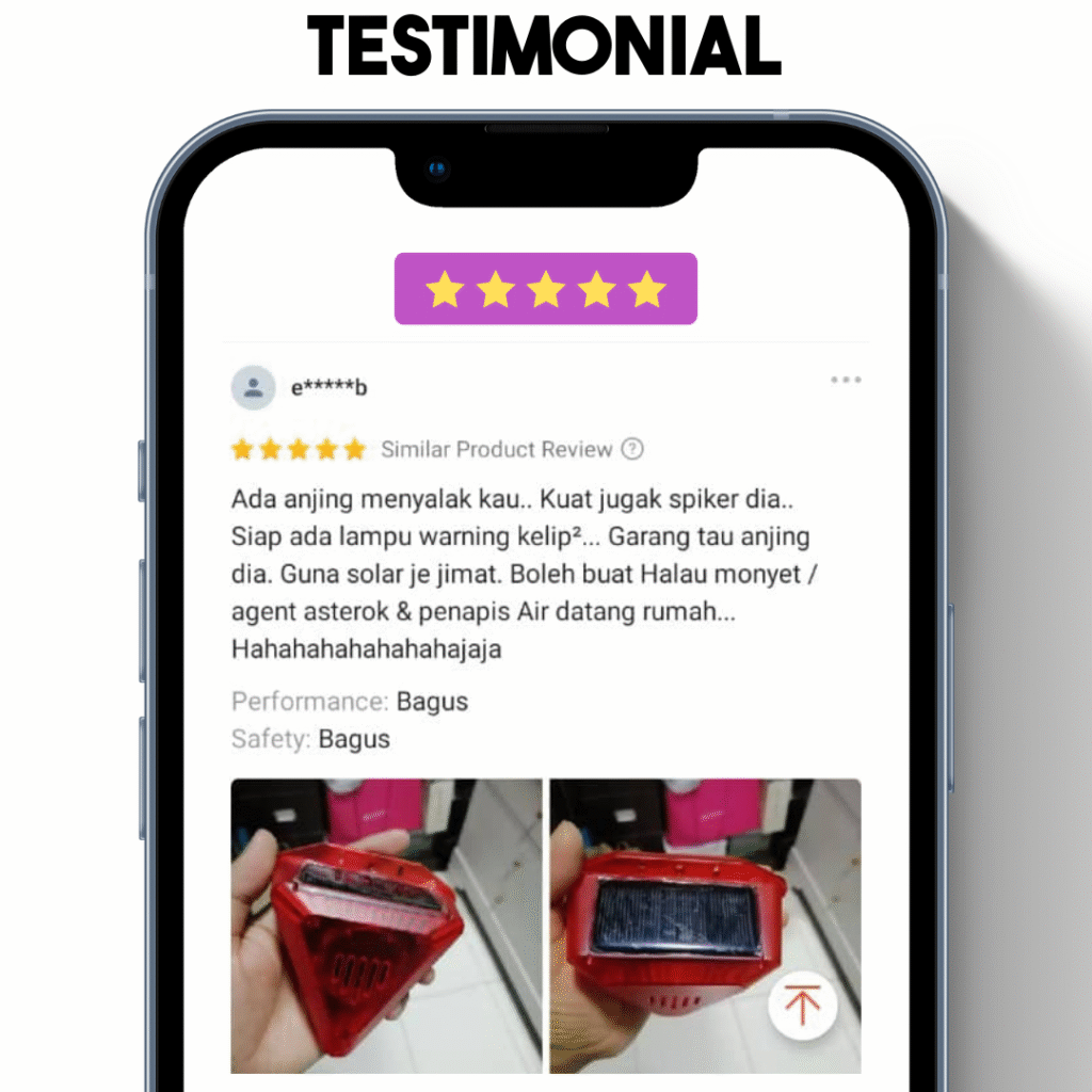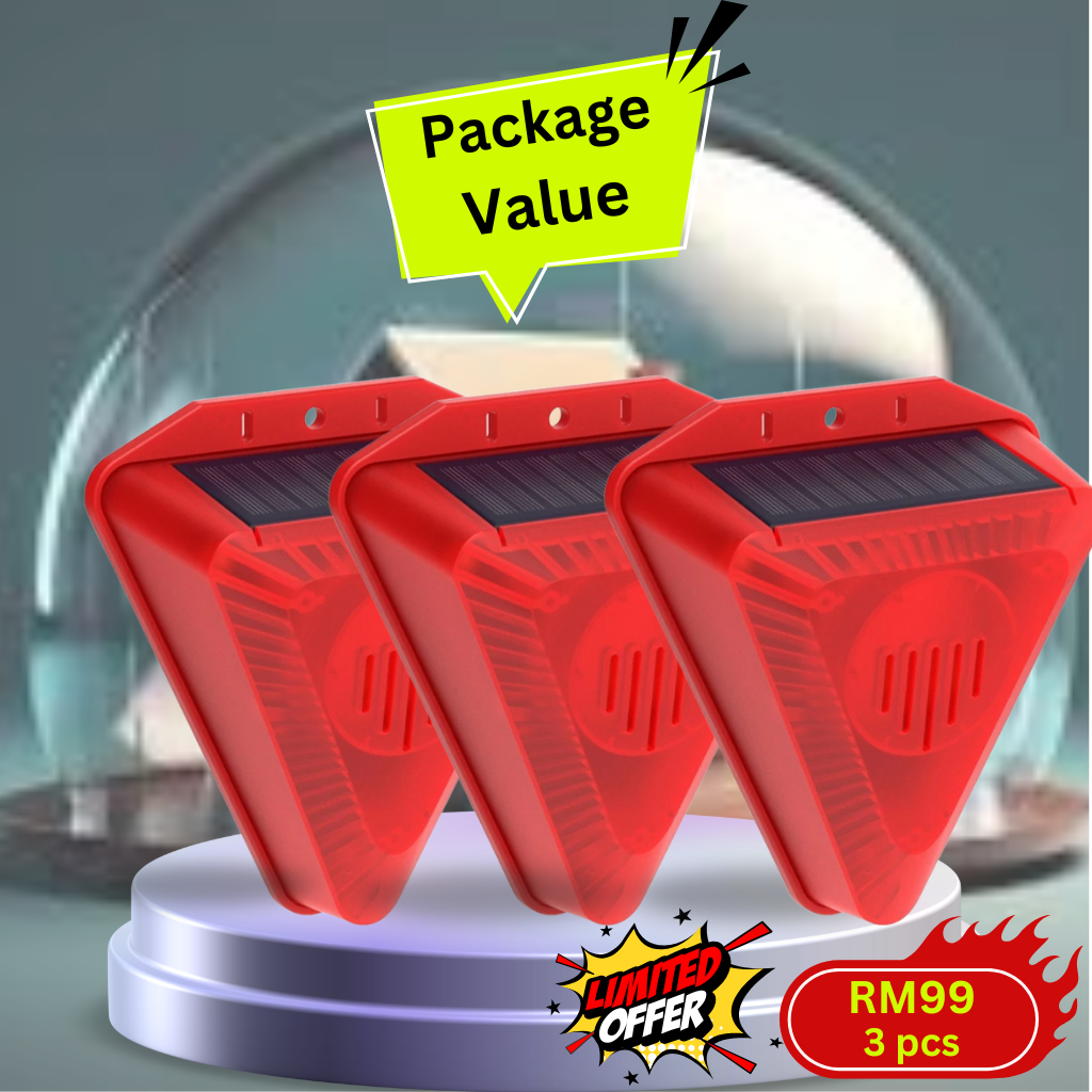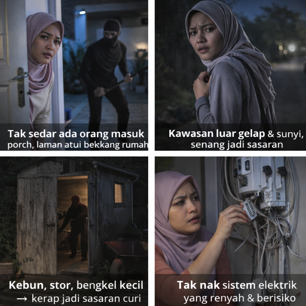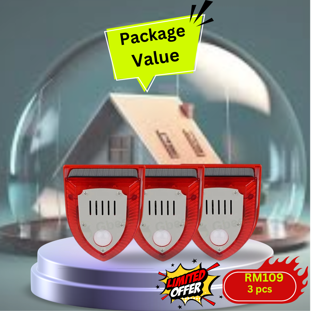 | Lampu biasa – tidak menakutkan pencuri @ binatang | Sistem bunyi yang kuat cukup menyeramkan serangan ceroboh |