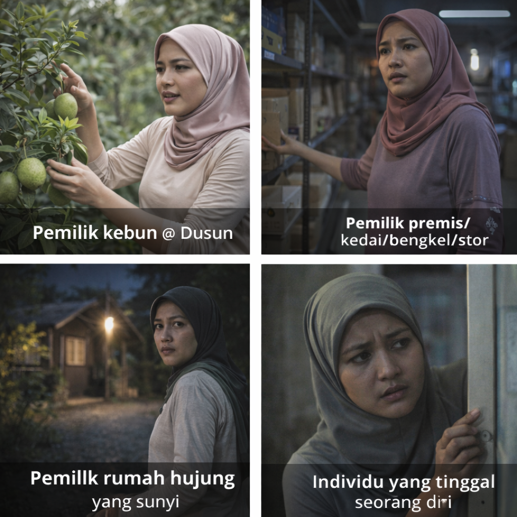 | Tanpa alarm – lebih risiko kecurian/kerosakan/kemusnahan | Berkesan 24jam terutama mood malam – lebih selamat |