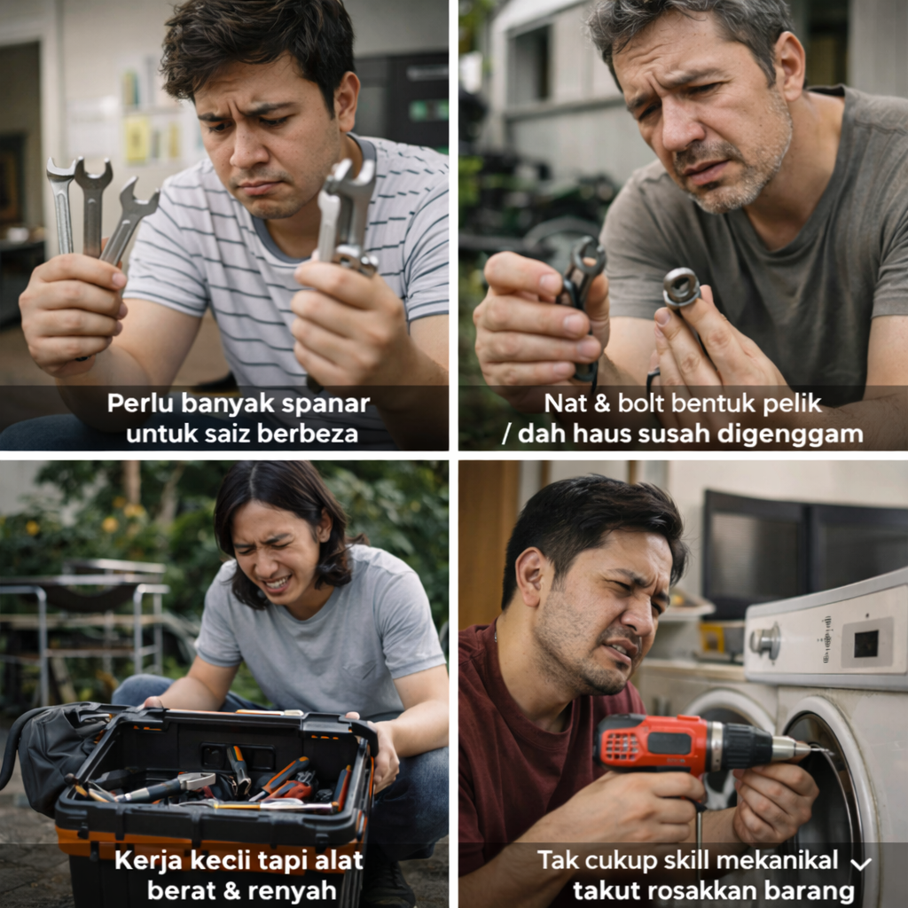 - Teknologi pelarasan sendiri ikut saiz & bentuk nat/bolt