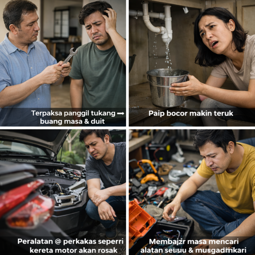 - Terpaksa panggil tukang. Buang masa & duit