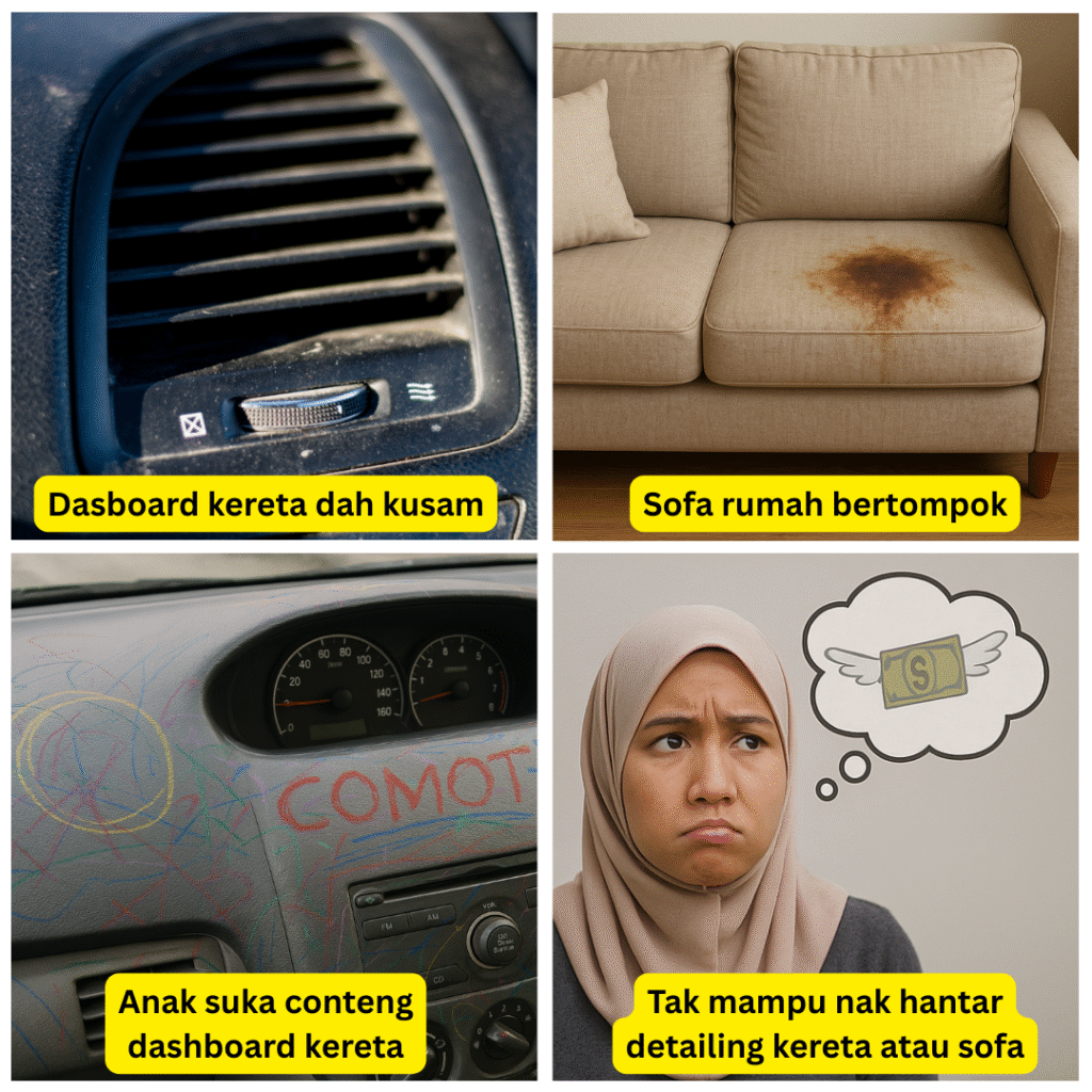 “Kereta & Sofa Nampak Baru Balik – Spray Je, Lap & Siap!”