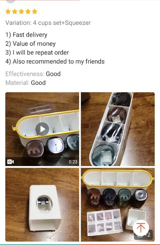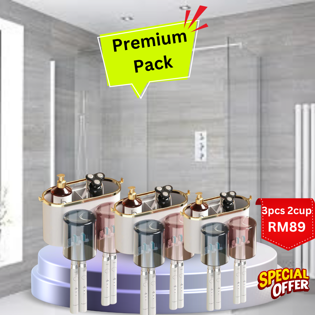 - Multi-fungsi — rak, pemegang berus gigi, cawan kumur, dispenser ubat gigi