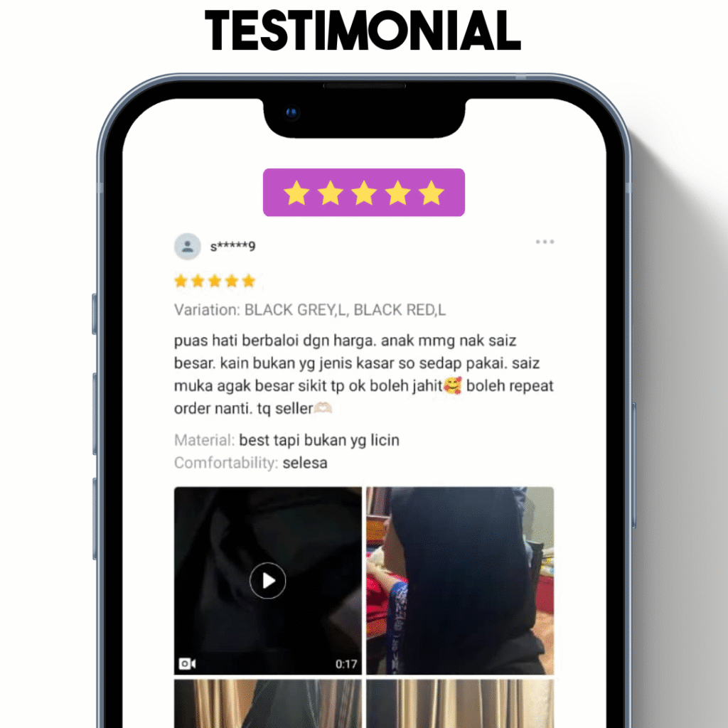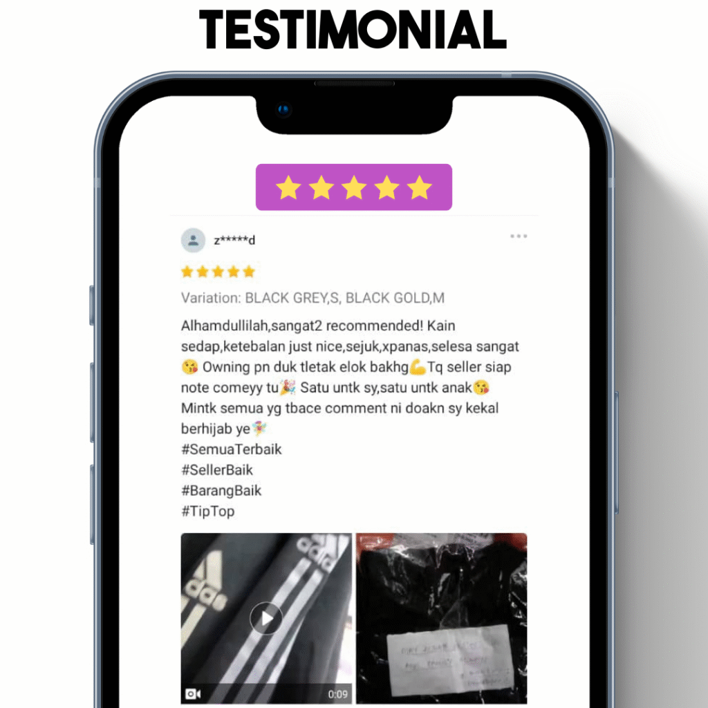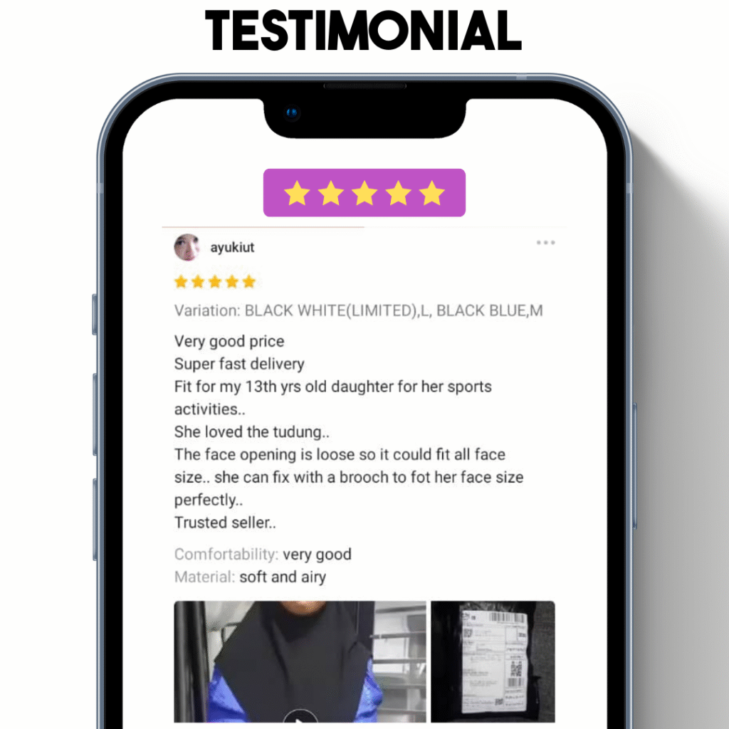 Risau Aktif Sukan, Tapi Tudung Tak Sesuai? Selalu Dilema, Tudung Jadi Halangan Nak Berjogging, Main Badminton Atau Climbing? Jika Anda Hadapi Salah 1 Masalah Di Atas,Ini Tips Untuk Anda! Baru 10 Minit Jogging Tudung Basah Jeruk. Nak Adjust Tudung Sambil Lari Memang SiksaTambah Kalau Tak Tutup Dada Lagi Susah. Ini Masalah Besar Yang Ramai Perempuan Berhijab Aktif Sukan Hadapi Setiap Kali Meluang Masa Minat Mereka Tudung panas & melekat bila berpeluh Tudung "lari" & susah kekalkan bentuk Perlu gosok setiap kali nak pakai Tudung labuh tapi berat & panas Sebenarnya, Ramai Yang Nak Ikut Syarie, Tapi Dilema Terbesar Adalah Terpaksa Pilih Antara "Keselesaan" Atau Aurat... Akibatnya Main Sauk Mana Yang Ada. Sebab Itu Fashion Anda Jadi Carca Marba. Akhirnya Hanya Jadi Bahan Ejekan Come On Girls. Wake Up! Kami Tawar 1 Solusi Terbaik Untuk Anda Yang Aktif Bersukan! Produk yang terjual sepanjang 2025 0 Memperkenalkan... TUDUNG SPORTS HIJAB Bukan Sekadar TudungIa Sesuai Dengan Gaya Hidup Aktif Wanita Muslimah. KENAPA IA TERBAIK UNTUK ANDA??? Soft Awning – Senang Bentuk Ironless – Pakai Terus Siap Labuh Menutupi Dada Kain Selesa & Serap Peluh Tahan Panas & Aktiviti Lasak KENAPA TUDUNG BIASA TAK SESUAI UNTUK WANITA AKTIF??? Tudung BiasaTudung Sport Hijab Bentuk kain yang panas & melekat Material lembut untuk serap peluh & ada aliran ruang udara Perlu gosok sebelum digunakan Sangat menjimatkan masa kerana ia “ironless” Awning susah dibentuk Awning senang terbentuk Terlalu pendek, tidak tutup aurat & susah bergerak jika terlalu besar Saiz sedang – tutup aurat & tidak terlalu labuh serta lebar SIAPA YANG WAJIB ADA KOLEKSI TUDUNG INI??? Apa Kata Pengguna Sebenar? Berita Baik Untuk Anda Yang Aktif Bersukan & Tengah Mencari Tudung Outfit Sesuai, Menjimatkan Tenaga & Wang! Promosi Belian Khas Hari Ini TAK PERLU RISAU BARANG TAK SAMPAI. BAYAR JE DEKAT POSMEN Hanya Sarungkan Dan Terus Jalan. Senang Lagi Selamat! DAPATKAN HARI INI!!!TUDUNG SPORT HIJAB HANYA TINGGAL SAIZ M DALAM KOLEKSI KAMI!!! PROMOSI AKAN TAMAT TAK LAMA LAGI!! Nak Order? Sila Isi Borang Tempahan di Bawah Tudung Sport Hijab MYNAMA PENUHPakej Pakej Trial- RM39 (1pcs) Pakej Combo - RM59 (2pcs) Pakej Value - RM79 (3pcsALAMATPOSKODNO TELEFONNOTAPOSTAGE COD (RM10)Tempah Sekarang