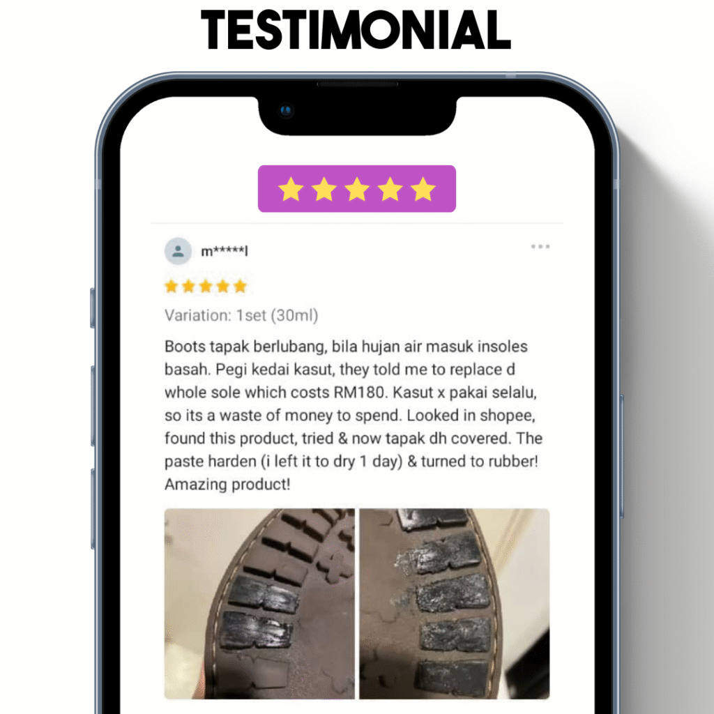 - kasut getah pecah walau permukaan masih elok