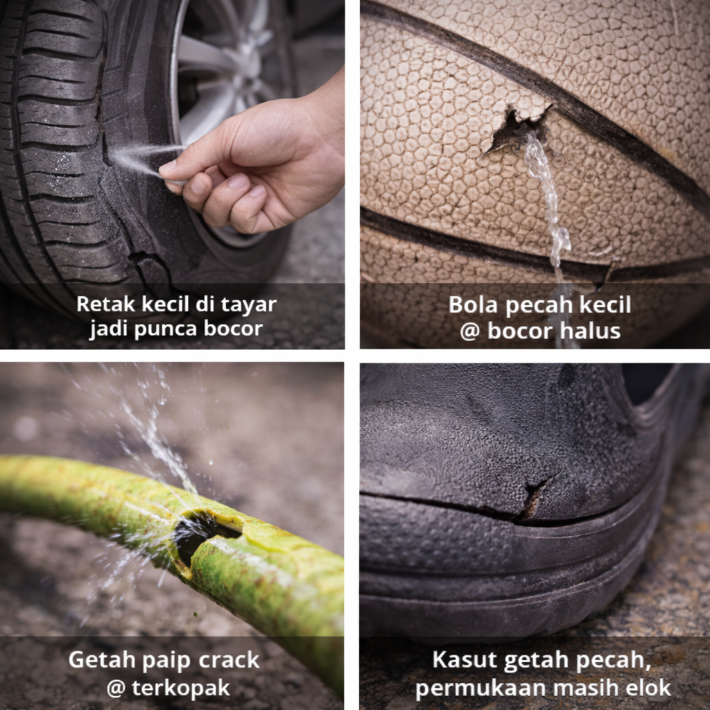 - Tayar bocor akibat retakan kecil @ bocor halus pada tayar kenderaan