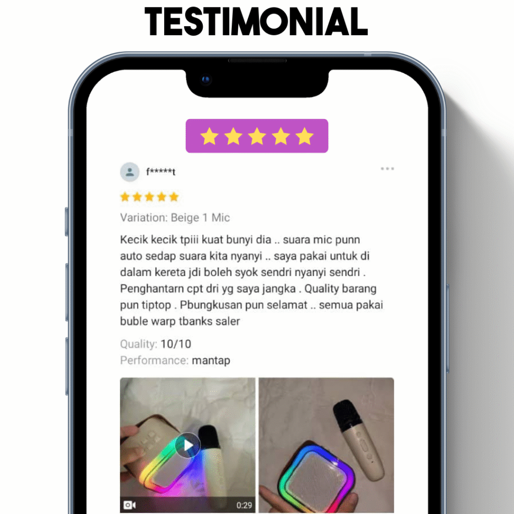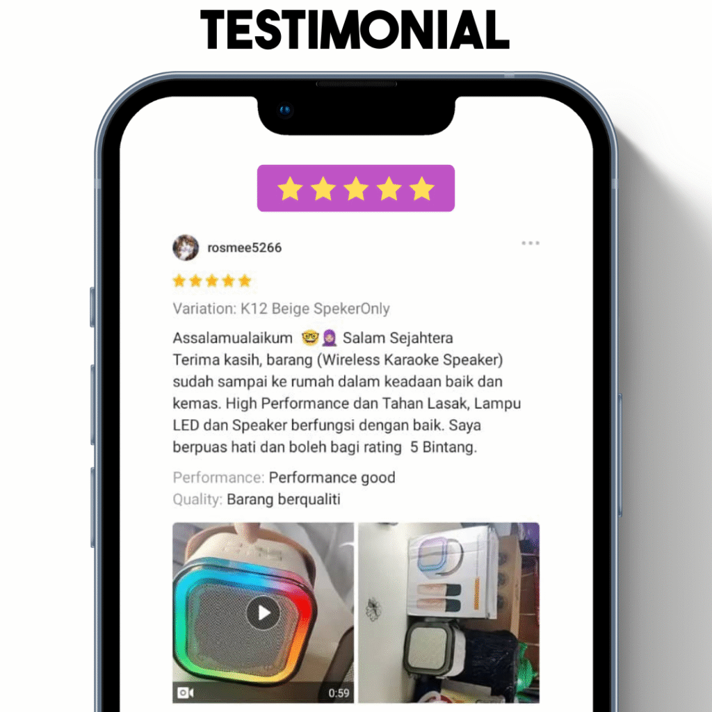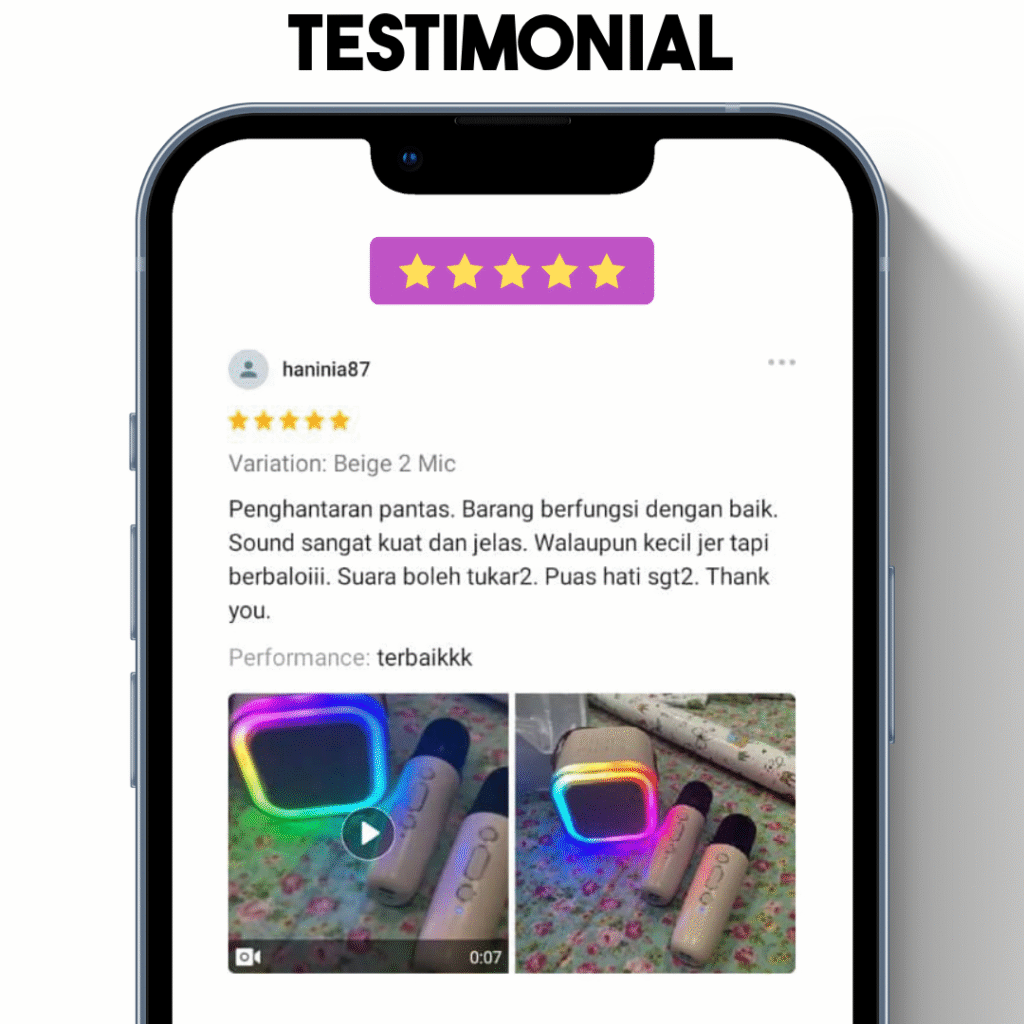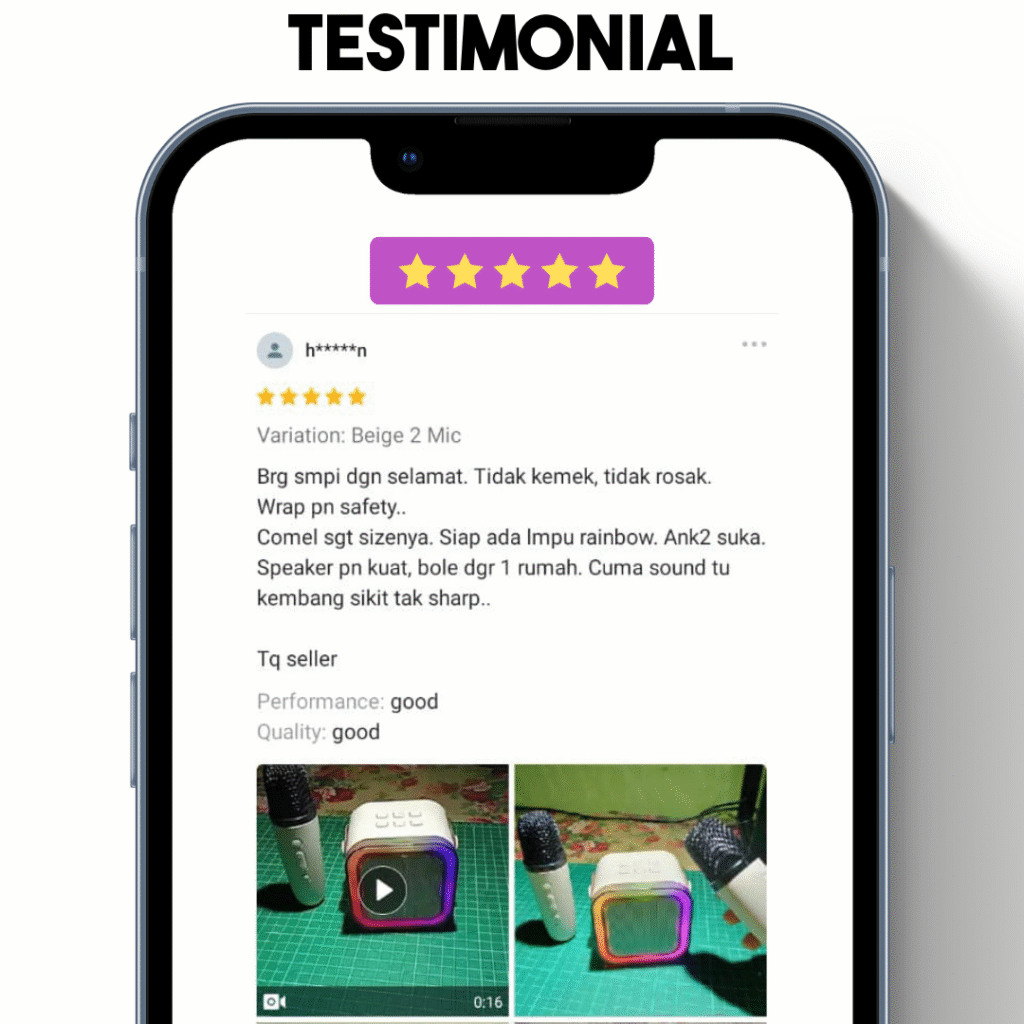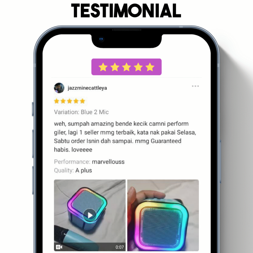 | Ability | Kebanyakkan mini speaker bukan untuk karaoke | Boleh pakai untuk karaoke dan dengar muzik sekaligus |